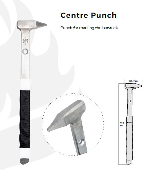 Centre Punch von Ridolfo zum exakten Ankörnen und Markieren von Bohr- oder Lochpositionen im Hufeisen. Gefertigt aus hochwertigem Werkzeugstahl für präzise Führung und zuverlässigen Einsatz im täglichen Schmiedebetrieb.